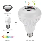 مشخصات : اسپیکر بلوتوثی لامپ RGB با قابلیت تغییر رنگ نور – توان خروجی: ۱۲ وات – توان LED: ۶ وات – توان RGB: ۳ وات – توان اسپیکر: ۳ وات – طول عمر لامپ: ۵۰۰۰۰ ساعت – ولتاژ ورودی: ۱۰۰ – ۲۲۰ ولت متناوب – بلوتوث نسخه ۳ – برد عملکرد کنترل: ۸ – ۱۰ متر (بدون وجود مانع) – باتری کنترل: باتری دکمهای CR۲۰۲۵ ۱۵۰mAh ۳V – اندازه سرپیج: E۲۷