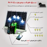 پکیج خورشیدی قابل حمل نور مانا مدل N18SLA50 ظرفیت 200 وات ساعتاین دستگاه نوعی مولد برق خورشیدی است که برای استفاده در مناطق بدون برق و یا با قطعی برق بالا طراحی شده است. این پکیج را می توان در خانه و خارج از خانه یا عملیات میدانی، در منطقه تجاری، چادر زدن (کمپینگ)، صحرانوردی، صنعت دامپروری، مزرعه، زنبورستان، بازار شبانه، کشاورزی و غیره استفاده کرد. همچنین می توان آن را بعنوان روشنایی اضطراری و برق عشایری استفاده کرد. قابلیت های عمومی دستگاه شامل روشنایی تا 31 ساعت به ازای یک لامپ بعلاوه امکان شارژ تلفن همراه، هشدار ملایم صوتی در هنگام روشن و خاموش شدن دستگاه، بدنه فلزی و محکم با طراحی متناسب برای حمل دستگاه برای مسافت طولانی، دارای مدار محافظ باتری در مقابل دشارژ بیش از حد مصرف باتری، دارای فیوز الکترونیکی در برابر اتصال کوتاه و اضافه بار می باشد. قابلیت های منحصربفرد و ویژه دستگاه شامل تامین روشنایی هوشمند، با تاریکی هوا امکان استفاده از روشنایی بصورت چشمک زن جهت ترساندن حیوانات مزاحم، امکان تنظیم زاویه صفحه خورشیدی در فصول مختلف سال، محافظت هوشمند دستگاه در برابر تخلیه عمیق باتری، دارای چراغ اضطراری لنزدار جهت سرکشی در محوطه می باشد. وزن تقریبی دستگاه 6.5 کیلو گرم و وزن تقریبی دستگاه به همراه پنل و با بسته بندی 14 کیلوگرم می باشد. جنس بدنه دستگاه فلزی است.این دستگاه دارای باتری داخلی 18 آمپر ساعت سیلید اسید 12 ولت و صفحه خورشیدی 50 وات می باشد. همچنین این دستگاه دارای دو عدد خروجی USB برای شارژ تلفن همراه، چهار عدد خروجی 12 ولت جهت اتصال لامپ ها، یک اتصال ورودی جهت اتصال صفحه خورشیدی،دارای دو خروجی فعال در شب جهت روشنایی با تاریک شدن هوا و یا چشمک زن، چهار چراغ نشانگر وضعیت شارژ باتری، چراغ نمایشگر خروجی و دارای چراغ نمایشگر اتصال صفحه خورشیدی می باشد. اقلام همراه دستگاه شامل صفحه خورشیدی 50 وات به همراه نگه دارنده با طول کابل حداقل 6 متر با قابلیت تنظیم زاویه برای فصل پاییز و زمستان بوده و همچنین دارای 4 عدد لامپ ال ای دی 5 وات با 3 کابل رابط به طول 4 و 1 کابل رابط به طول 10 متر و دارای سرپیچ و کلید بین راهی و پنج عدد آویز فلزی جهت آویزان کردن لامپ ها از ارتفاع، کابل شارژ چند سر، دارای کیف لوازم جانبی جهت نگه داری تجهیزات همراه، دارای آداپتور برق شهر(جهت شارژ دستگاه با برق شهر)،مبدل فندکی جهت اتصال اینورتر می باشد.